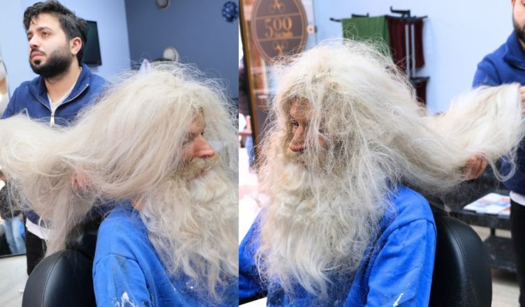 The man's extremely long, untidy hair, which has likely been neglected for years, is shown in the video being painstakingly cleaned, chopped, and styled by a volunteer barber or stylist. It's amazing how much the before and after have changed. The hairdresser uses only scissors, clippers, and empathy to change the man from tired and worn out to confident and polished.